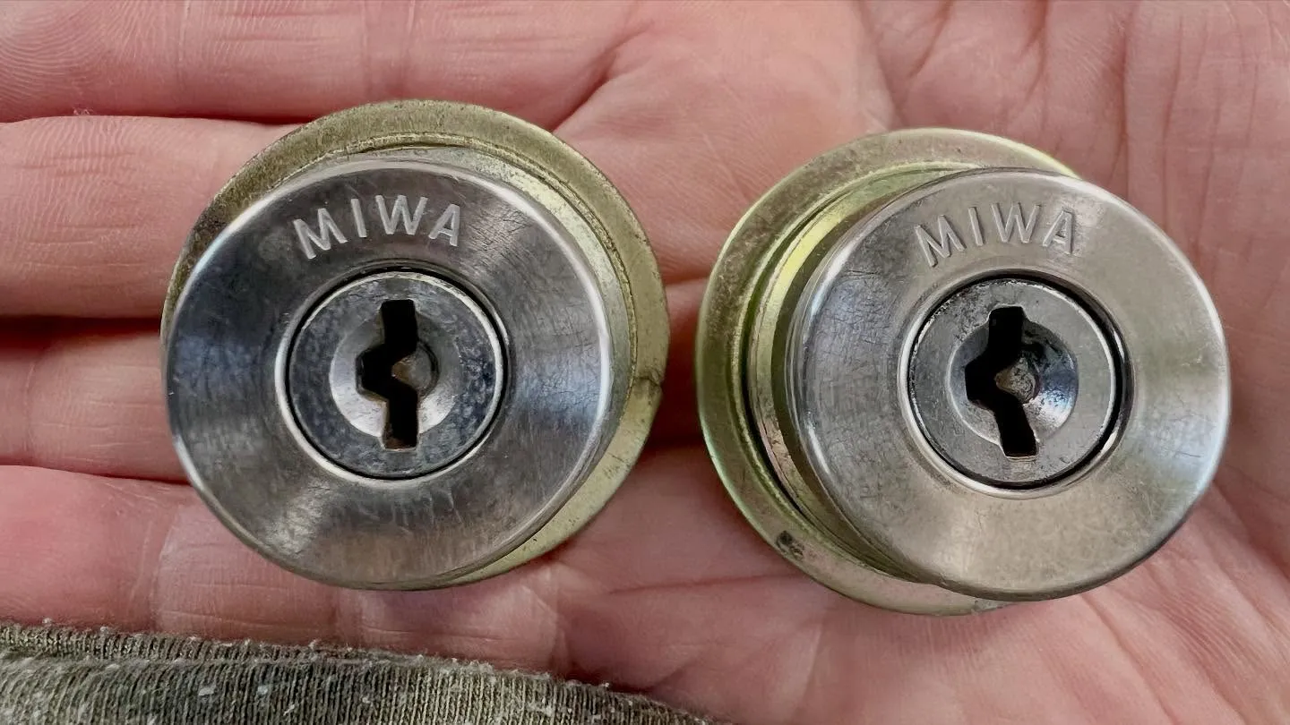 今回はMIWA社の縦型くの字タイプの鍵を、KABA Ace3250R(同一鍵2個・鍵6本付き)に交換。